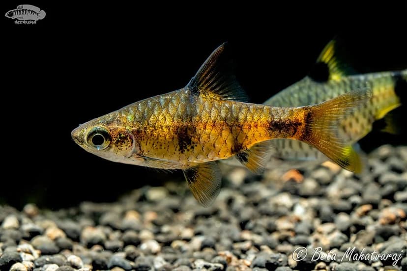 Pethia canius, also known as the Canara Barb, is a small and peaceful fish from the Cyprinidae family, ideal for community aquariums with other non-aggressive species.