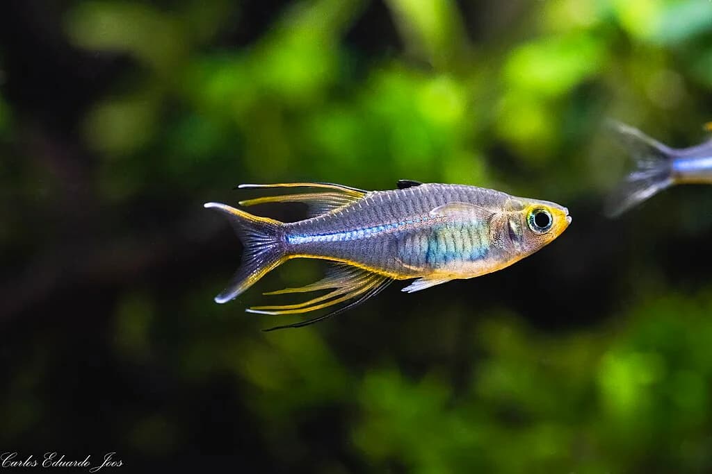 Telmatherina ladigesi, commonly known as the Celebes Rainbowfish or Ladiges Rainbowfish, is a small, colorful freshwater fish belonging to the family Melanotaeniidae. This species is native to the streams and lakes of Sulawesi, Indonesia, where it inhabits clear, slow-moving waters. Celebes Rainbowfish are admired for their vibrant, iridescent bodies that shimmer in hues of blue, green, and yellow, making them a popular choice among aquarists. They have a slender body shape with distinctively elongated fins and are known for their peaceful temperament, making them suitable for community aquariums.